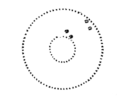 fast ovalen Bahnfigur, die nach und nach immer mehr zu einem Kreis